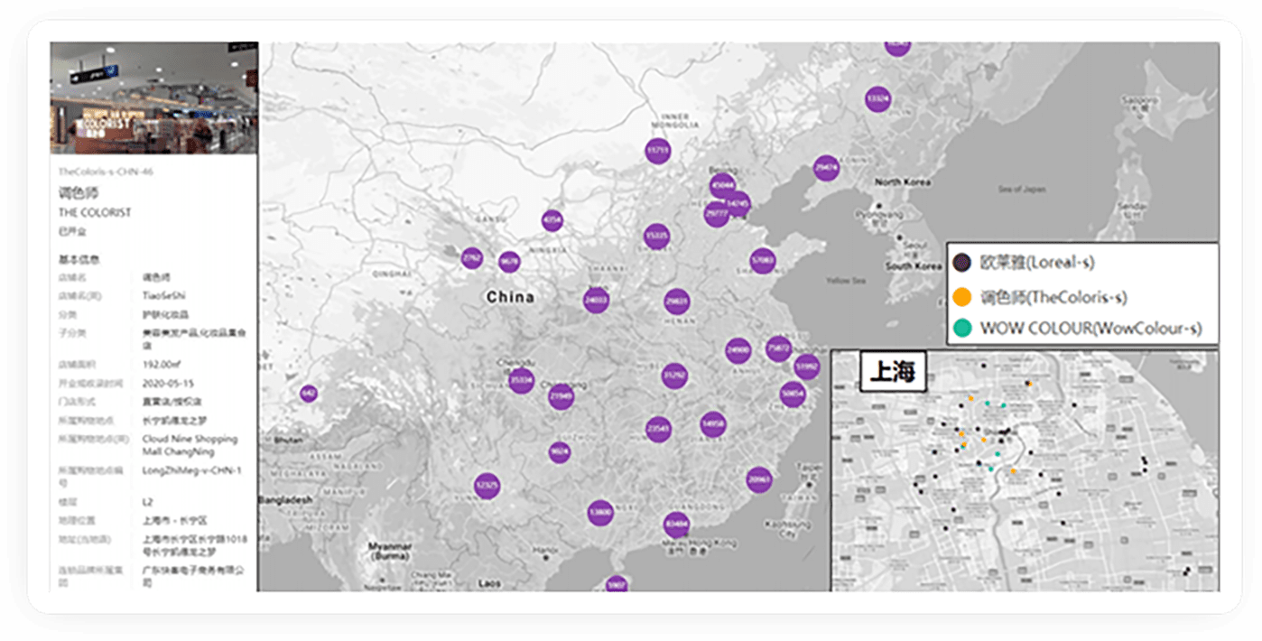 提供實時市場數據,追蹤6000+品牌,洞察競品門店布局,可與自己的門店做對比
